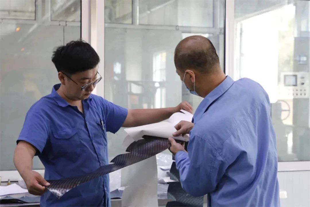 當產品第一次進入熱壓罐時,團隊對熱壓罐的使用感到棘手,幸而溫師傅擁有豐富的熱壓罐操作經驗。他不僅保證了熱壓罐的安全運作,還主動請纓留下來徹夜觀測實時數據,夜深人靜時,溫師傅堅守在熱壓罐旁,疲憊卻堅定的眼神讓人心生敬意。為保障生產質量,劉師傅對一個小到1平方毫米的紙屑都不放過,閆師傅寧肯慢工出細活,也一定要保證產品質量。