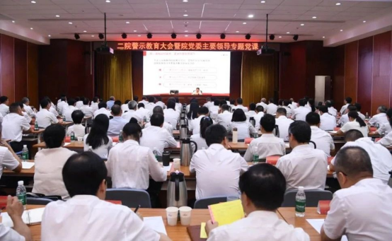 6月25日,二院召開深入貫徹中央八項規定精神學習教育警示教育大會暨院黨委主要領導專題黨課輔導會。會上,郭大勇以《堅持警鐘長鳴、以案為鑒,為奮力推進二院高質量發展提供有力作風保障》為題作專題黨課授課并開展警示教育,通報集團公司近期警示教育大會、集中整治違規吃喝專題推進會議精神,并結合集團公司和二院發生的典型案例,帶領大家深刻反思在貫徹落實中央八項規定精神方面存在的問題差距。