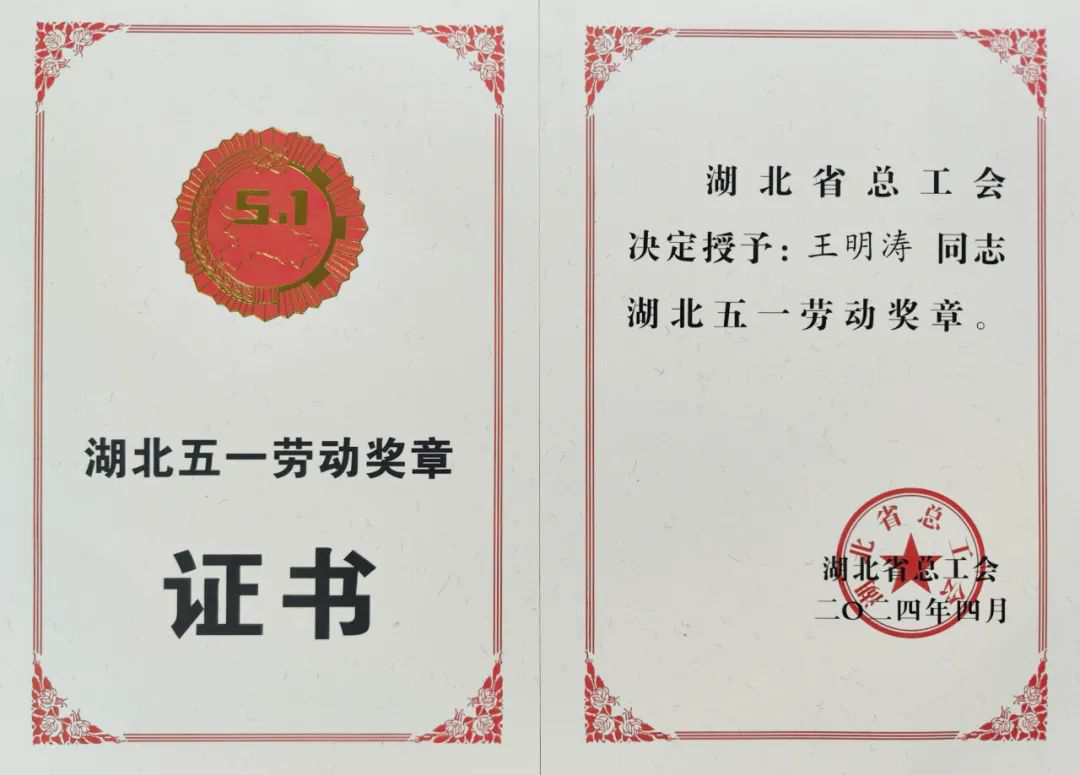 4月29日,湖北省慶祝“五一”國際勞動節座談會在漢召開,會上宣讀了《關于表彰2024年湖北五一勞動獎和湖北省工人先鋒號的決定》,其中,二院王明濤榮獲“湖北五一勞動獎章”。
