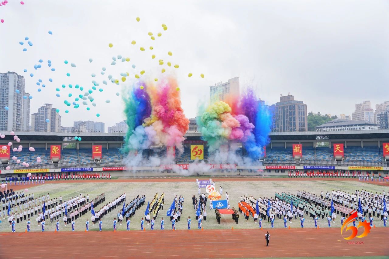 賽前,運動員代表、裁判員代表分別宣誓。由800人組成的廣播體操表演整齊劃一、舒展有力。而由十院100名退休職工帶來的太極八段錦表演則剛?cè)嵯酀闻c神于一體;兩側(cè)的舞龍更是靜中有動,傳統(tǒng)文化結(jié)合的節(jié)目贏得看臺上陣陣喝彩。貴州航天工業(yè)學(xué)校帶來的團(tuán)體操表演《旗風(fēng)航帆》氣勢恢宏,高燃的音樂更是將全場氛圍引向高潮。