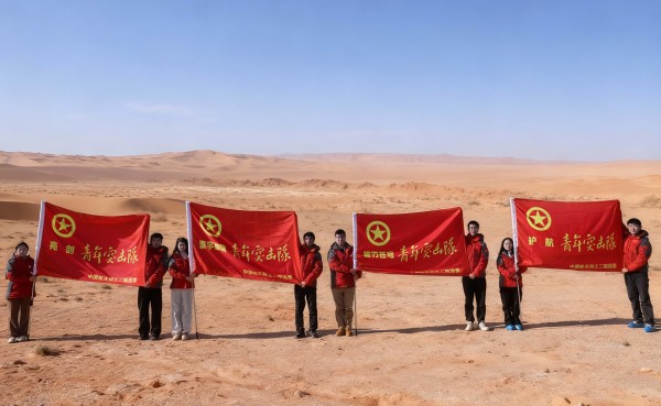 郭大勇在現(xiàn)場為4支青年突擊隊授旗。當青年突擊隊的旗幟飄揚在試驗場,青年們感到使命感在胸膛滾燙。耳畔是整齊響亮的誓言,身邊是并肩而立的伙伴,年輕的面龐充滿堅毅。戈壁的夕陽為獵獵旌旗鍍上金邊,青年的誓言與曠野的風(fēng)聲交織共鳴。旗幟不僅承載著信任與期望,更點燃了青年沖鋒的斗志。